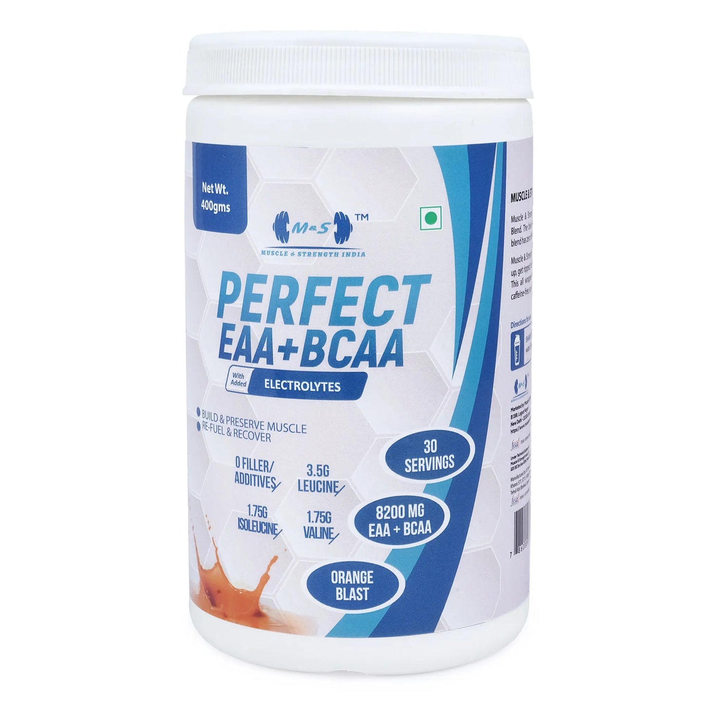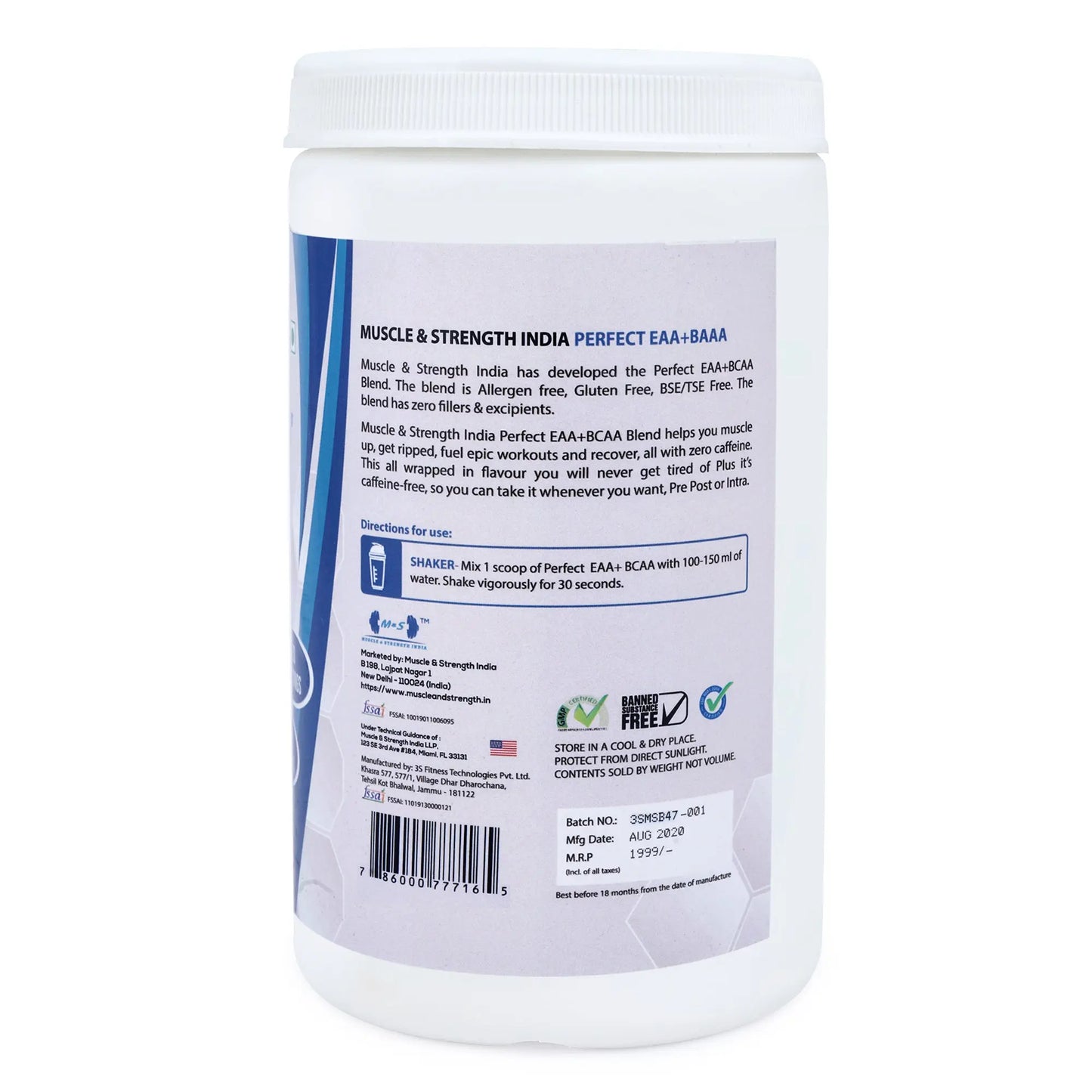 Muscle & Strength India has developed the Perfect EAA + BCAA blend. The blend is allergen free, gluten free, BSE/TSE free. The blend has zero fillers & excipients.