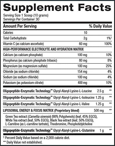 Energy , Performance And Endurance .Promotes Muscle , Protein Systhesis ,Advanced Oligopeptide Technology.Take 1 Scoop Blended Into 8 Oz Water Before Or During Workout.