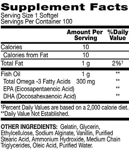 - FISH OIL DNA delivers 1g of fish oil (300mg Omega-3 Fatty Acids) per serving for cardiovascular support