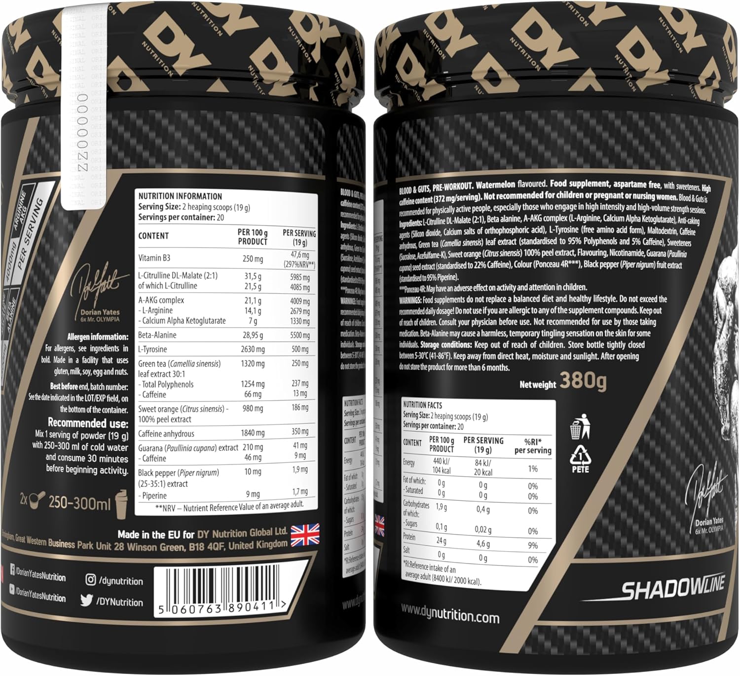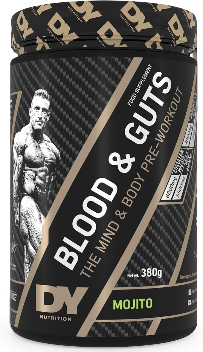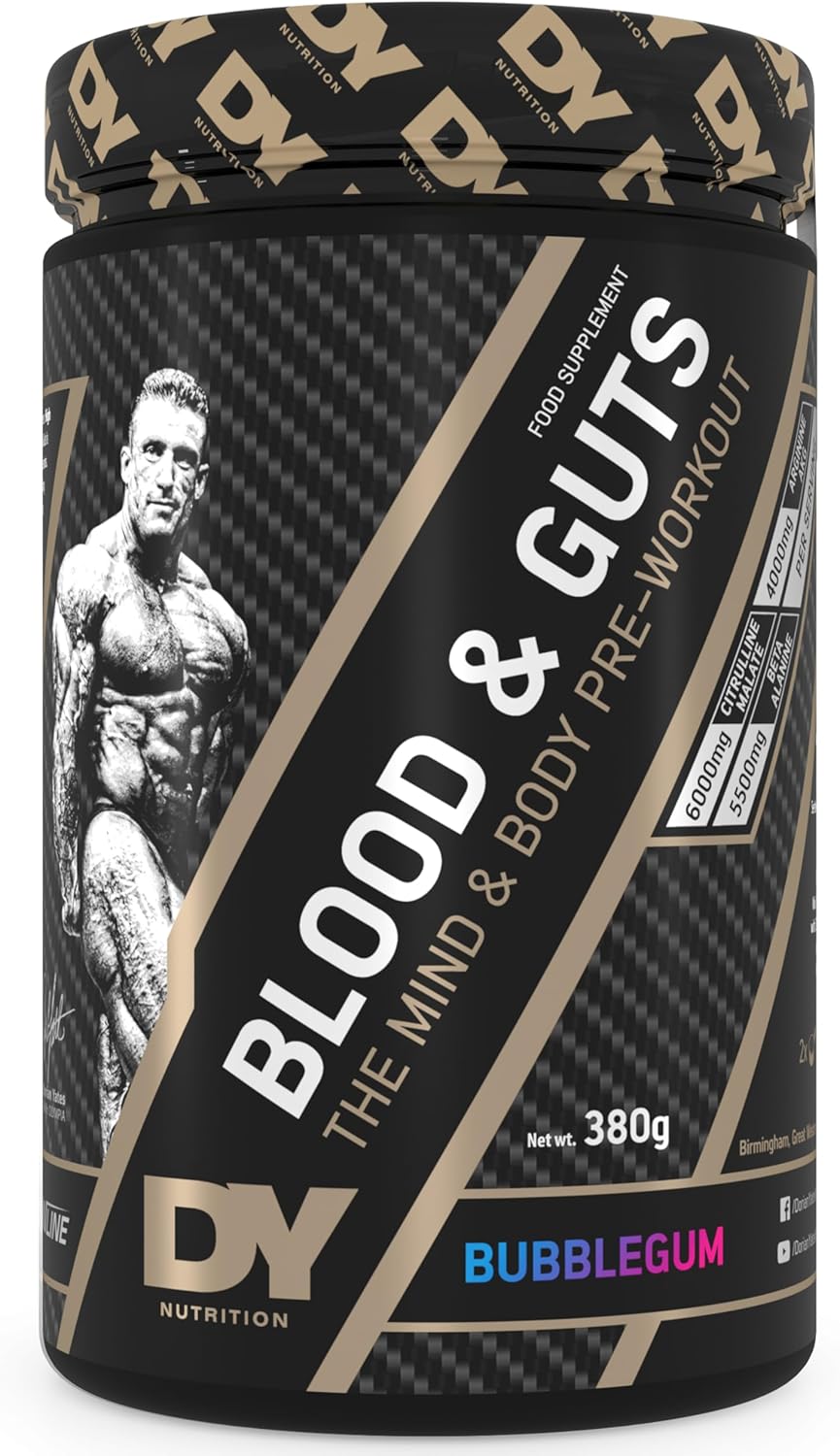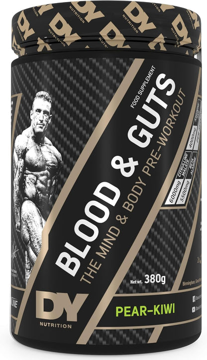 DY Nutrition Blood & Guts Pre Workout Powder, 380g - High Strength with 350mg Caffeine, Citrulline Malate, Beta Alanine, Arginine AKG, L-Tyrosine, Vitamin B3, Men & Women