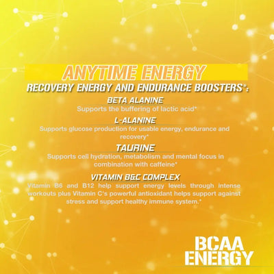 Fitness Enthusiasts and Athletes! BCAA Energy has been designed to boost your anytime energy, recovery and performance needs whether they are before, in-between or after your workouts. 5g of the highest quality BCAAs per serving combined with Beta Alanine, L-alanine and Taurine to enhance endurance, recovery and focus. BCAA Energy used natural energizers and antioxidants from Green Coffee and Green Tea for energy and focus. Anytime! Use as an energy and recovery boost anytime you would typically reach for a coffee, soda or energy drink. Customize your experience based on occasion with 1-serving for mild energy and 2-3 servings for more intense anytime energy, performance while training or post-workout recovery. BCAA Energy contains the highest quality of BCAAs and natural energizers along with zero sugar and carbs. Nothing else offers so many benefits! Once you make the switch, you will never go back!