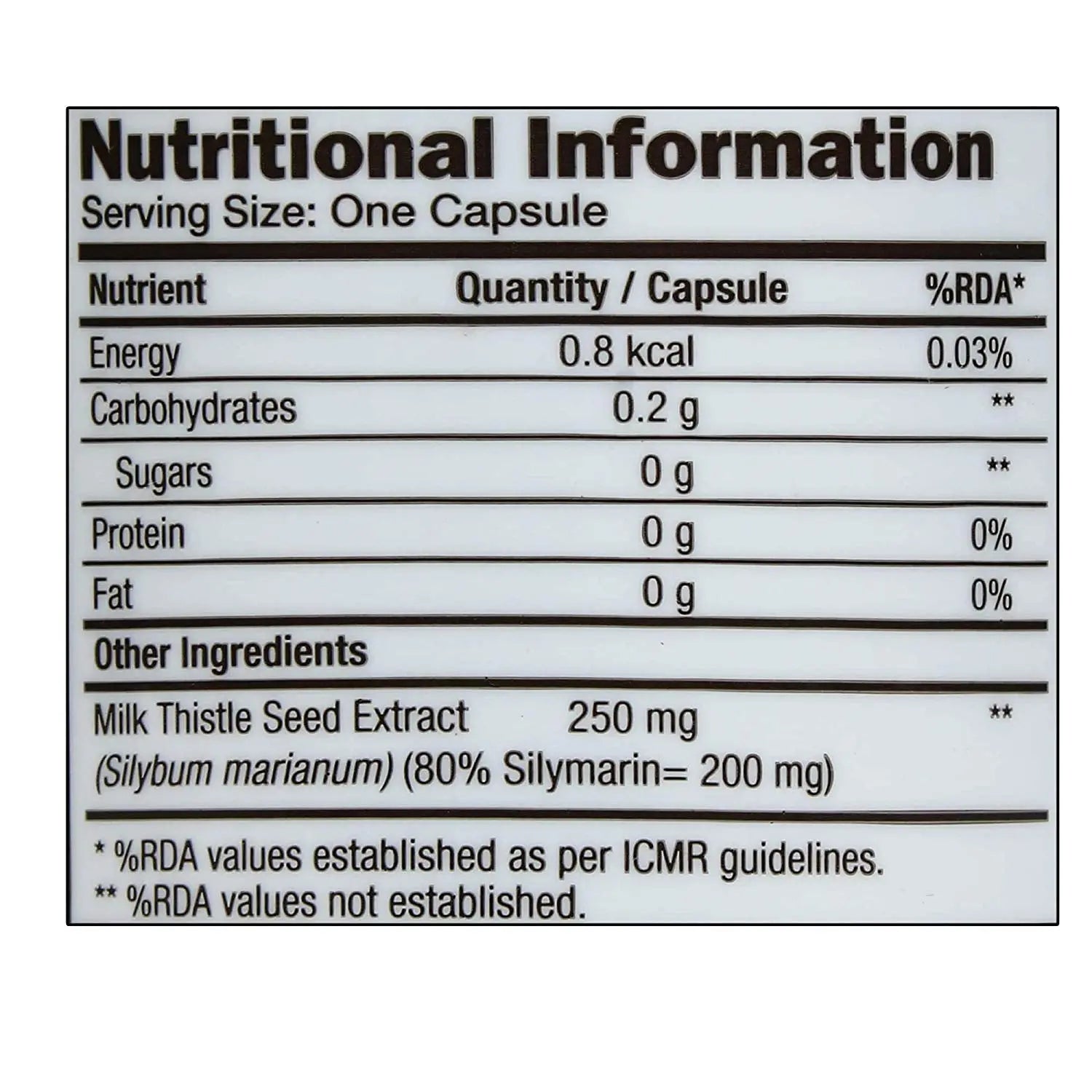An Effective Herbal Supplement to protect your liver. Provides the consistent amount of active component from Milk Thistle seed extract i.e. Silymarin. Vegetarian Capsule. Regulates already damaged liver tissues and stimulates the production of new liver cells