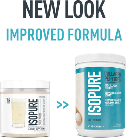 Isopure Collagen Peptides Powder, Promotes Hair, Nail, Skin and Joint Health,14 Servings, with Vitamin C, with Biotin