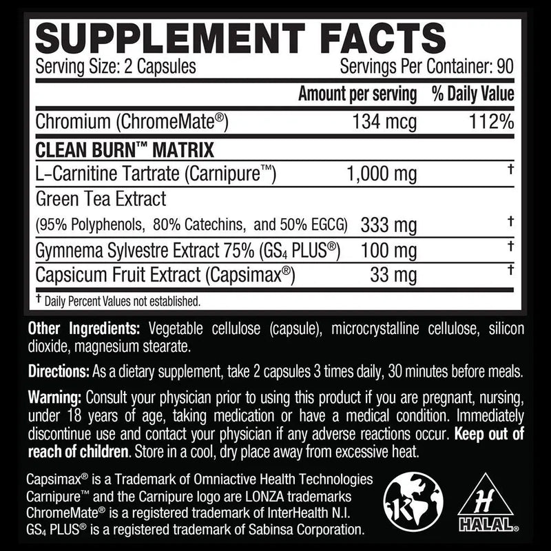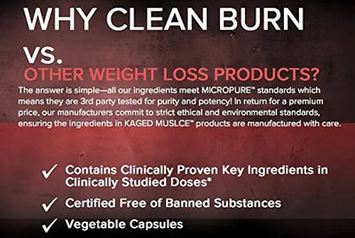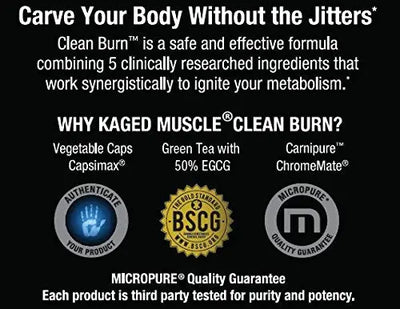 Struggling to get rid of stubborn body fat, and to burn fat, get super lean and have a sculpted six-pack you have to eat right and train hard. And still, it takes time. What if you could help amplify your body's fat-burning machinery to torch unwanted faster, that's where Kaged Muscle clean burn comes in. Each serving of clean burn is packed with powerful ingredients that work via several mechanisms to attack body fat. * it features highly-concentrated capsimax capsicum extract derived from red hot chili peppers that gives all of the heat of capsaicin without the burn. A natural, non-stimulant ingredient, capsimax is made to help suppress your appetite so you eat less and boost your metabolism and energy levels so you in turn, burn more calories *. Each serving also packs green tea extract (50% ECCG).
