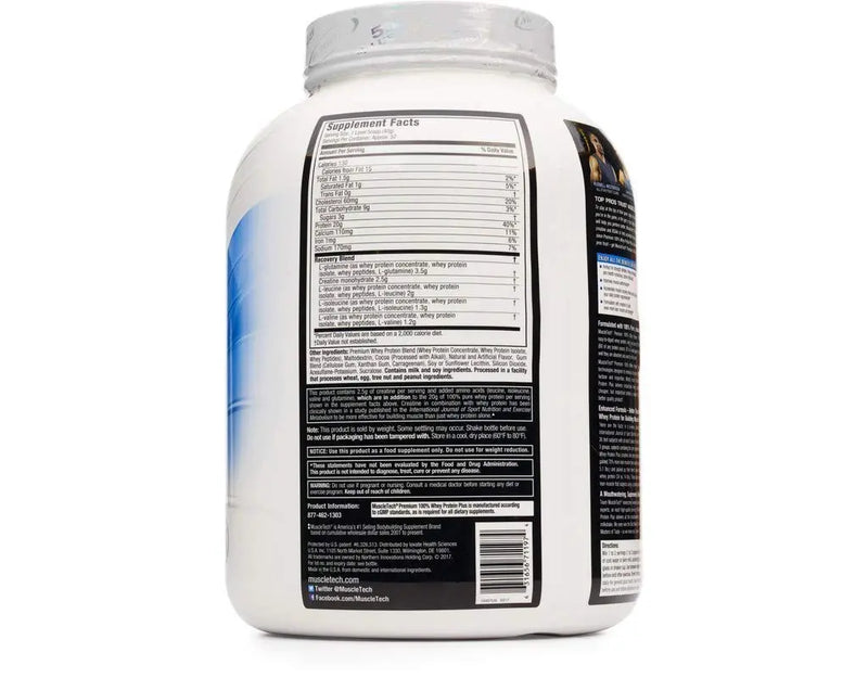 MuscleTech Premium 100% Whey Protein Plus was engineered with the advanced formula features multiple filtration technologies designed to enhance the purity of whey protein by reducing fat, lactose and impurities. MuscleTech Premium 100% Whey Protein Plus delivers instantized whey protein and is easier for mixing and creates an overall better quality product!