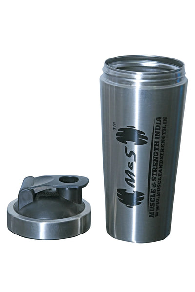 - Muscle & Strength India Shaker is a Scientifically designed which helps you eliminating powdered lumps completely Durable quality, bpa free, no leaking: it’s a leak-free shaker made from high quality food grade