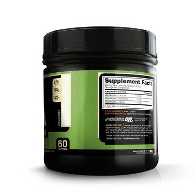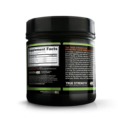 Used before endurance training, the Branched Chain Amino Acids (BCAAs) Leucine, Isoleucine and Valine can help spare muscle. Used after strength training, they help kick-start protein synthesis which plays an important role in muscle building. ON's BCAA 5000 Powder delivers 5 grams of BCAAs per serving in the preferred 2:1:1 ratio of Leuncine to Isoleucine and Valine. It's instantized for easy mixing into water, juice or post-workout shakes.