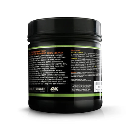 Used before endurance training, the Branched Chain Amino Acids (BCAAs) Leucine, Isoleucine and Valine can help spare muscle. Used after strength training, they help kick-start protein synthesis which plays an important role in muscle building. ON's BCAA 5000 Powder delivers 5 grams of BCAAs per serving in the preferred 2:1:1 ratio of Leuncine to Isoleucine and Valine. It's instantized for easy mixing into water, juice or post-workout shakes.