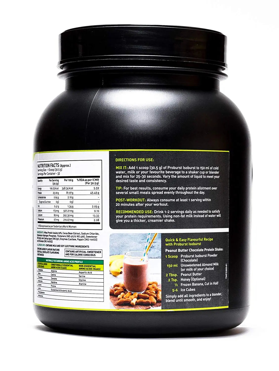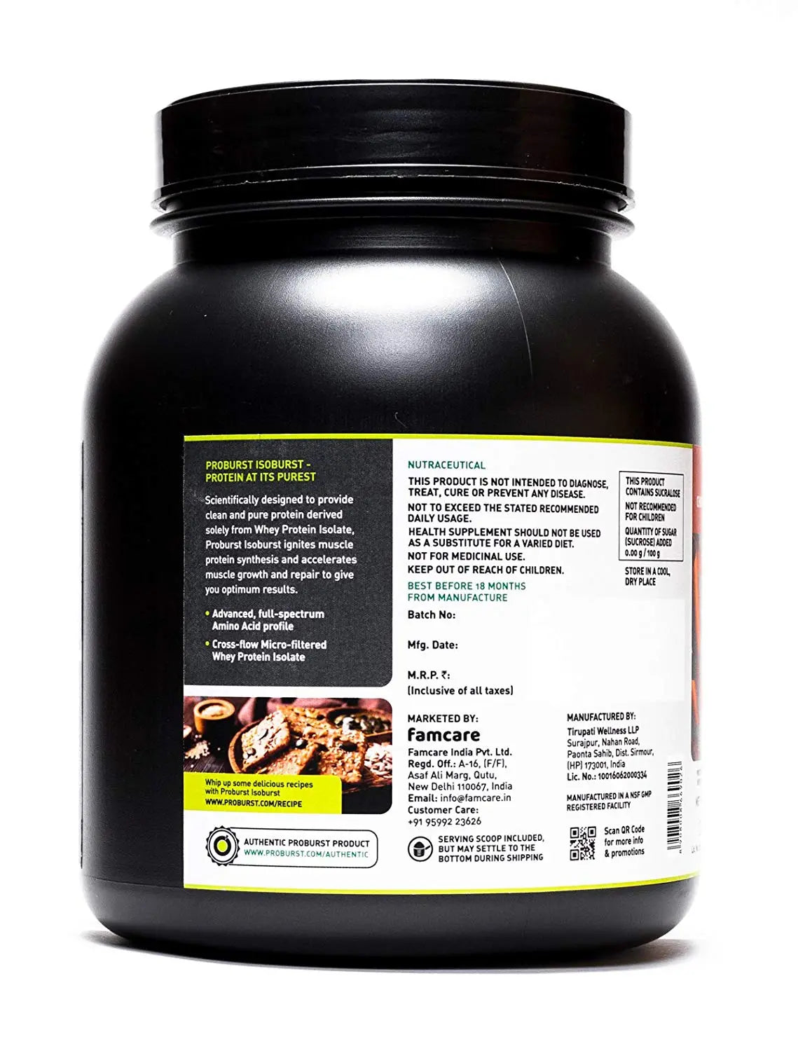 Proburst isoburst whey isolate is a premium quality whey isolate which helps in promoting easy absorption of protein by your muscles for a swift release of the protein energy. It is a superior quality whey protein, which is developed using micro filtered technology to ensure that your muscles get the optimum amount of protein they need for building muscles. This whey isolate not only contains protein but is also rich in bcaas and eaas. It aids in building endurance and increases your stamina. Moreover, it supports faster recovery after a rigorous workout session. Thus, it is a perfect protein supplement with a wide array of benefits. It aids you to enhance the development of your muscles and eliminate the unwanted fats from the body. It consists of micro filtered whey protein that is absorbed rapidly by the body and aids in the enhancement of the anabolic muscle proteins. It aids in increasing your workout performance and endurance to help you train for long hours.