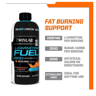STIMULANT FREE ENERGY & WEIGHT LOSS SUPPORT* ZERO Calories, Fat, Carbs or Sugars! Our best-tasting L-Carnitine liquid ever is also our most advanced. L-Carnitine is an amino acid suggested to promote fat-burning, athletic performance, energy and stamina.* Free of artificial flavors, colors and sweeteners, Twinlab L-Carnitine Fuel 1100 is in a convenient liquid designed to deliver the power of this amino acid quickly and deliciously, from the sports nutrition brand you can trust.
